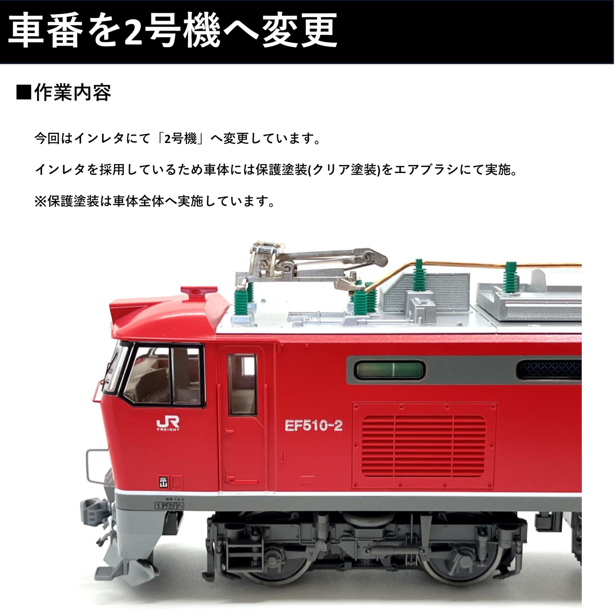 K社より発売されている「1-317・EF510 0 JRFマークなし」に,車番変更やグレードアップ作業を施した特製品となります。
