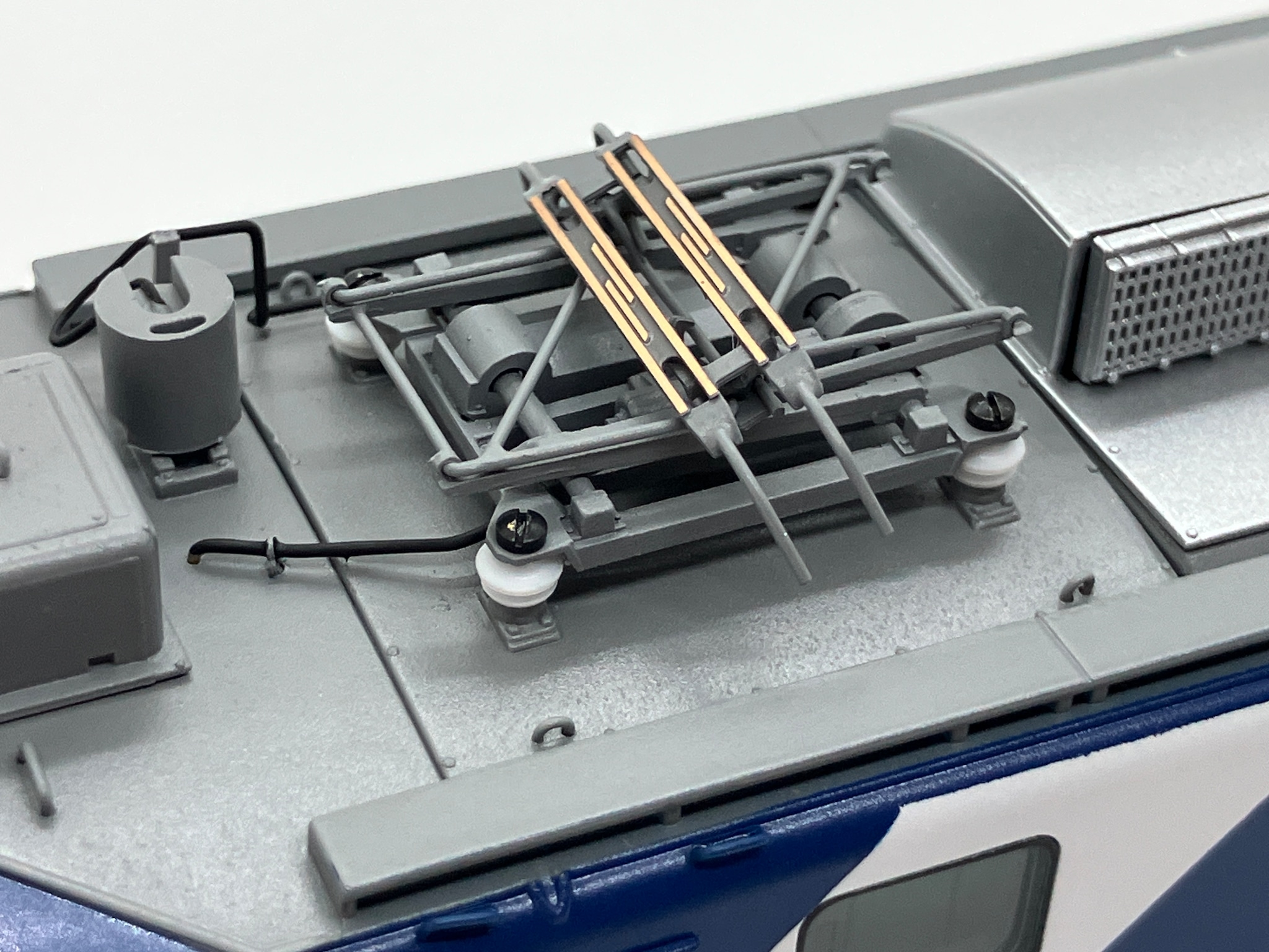 こちらが純正のパンタグラフです。グレーの塗り分けでスリ板っぽくしています。