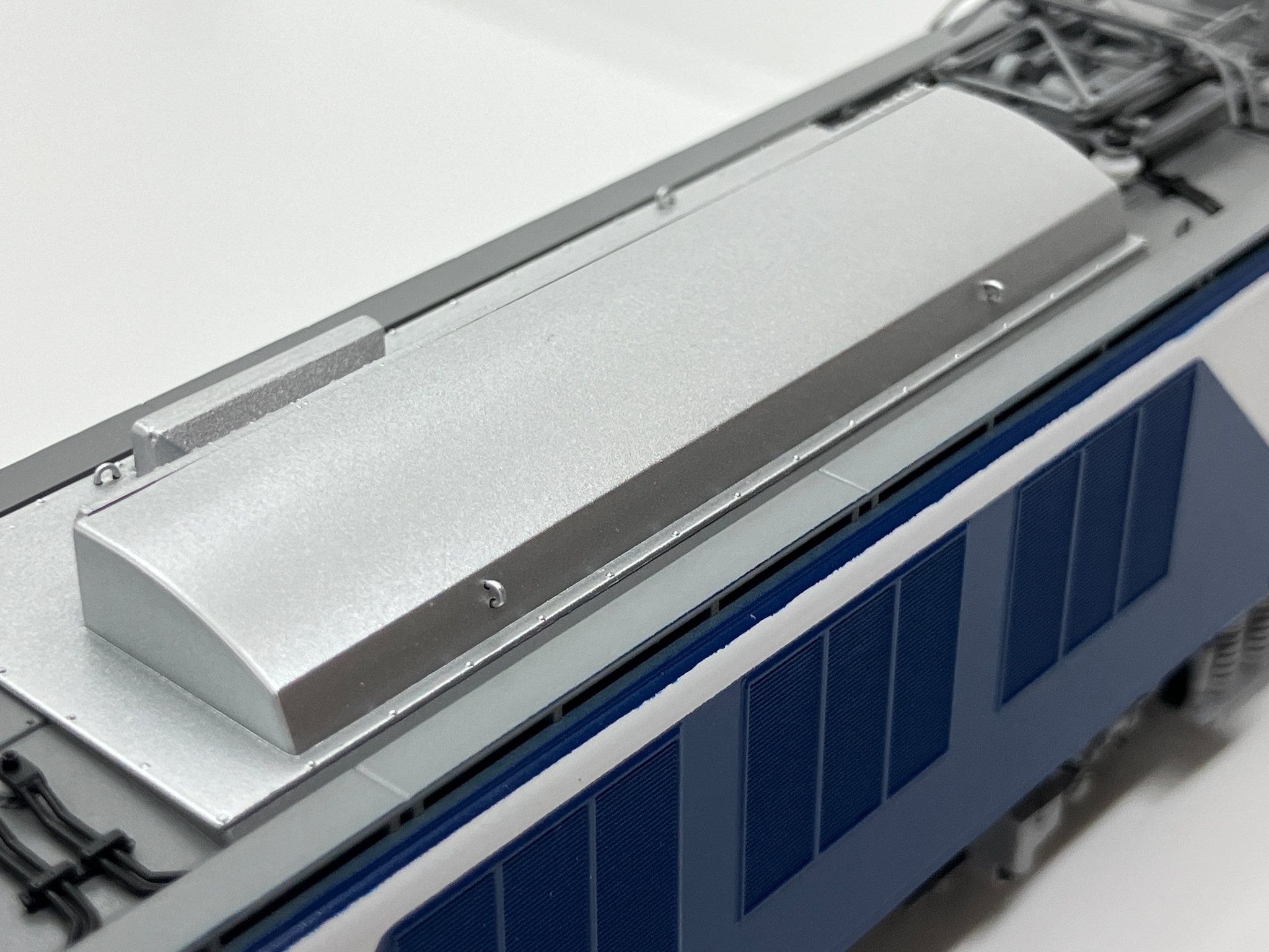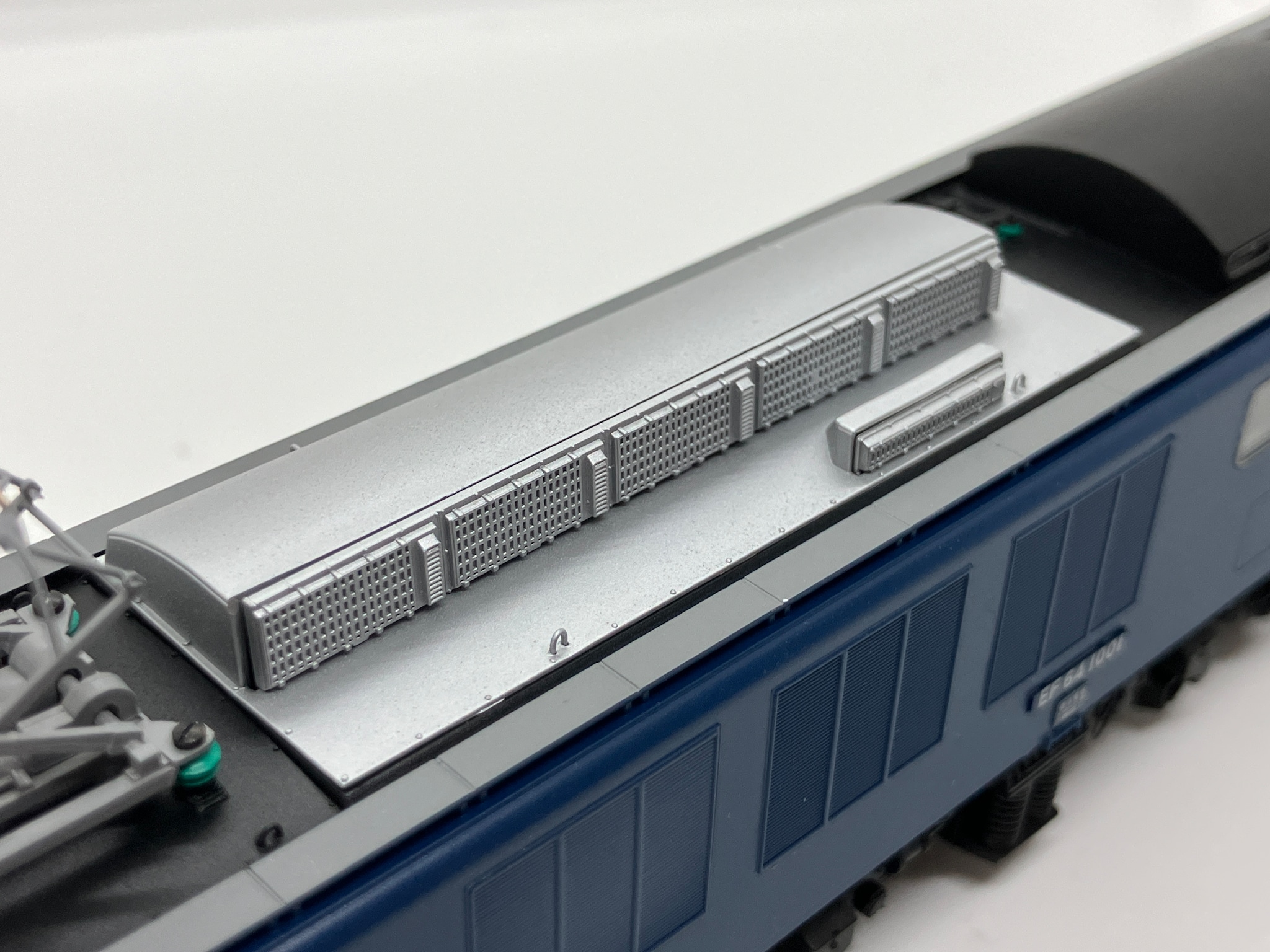 パーツ取付やパンタ塗装のみ施工した屋根板廻り。